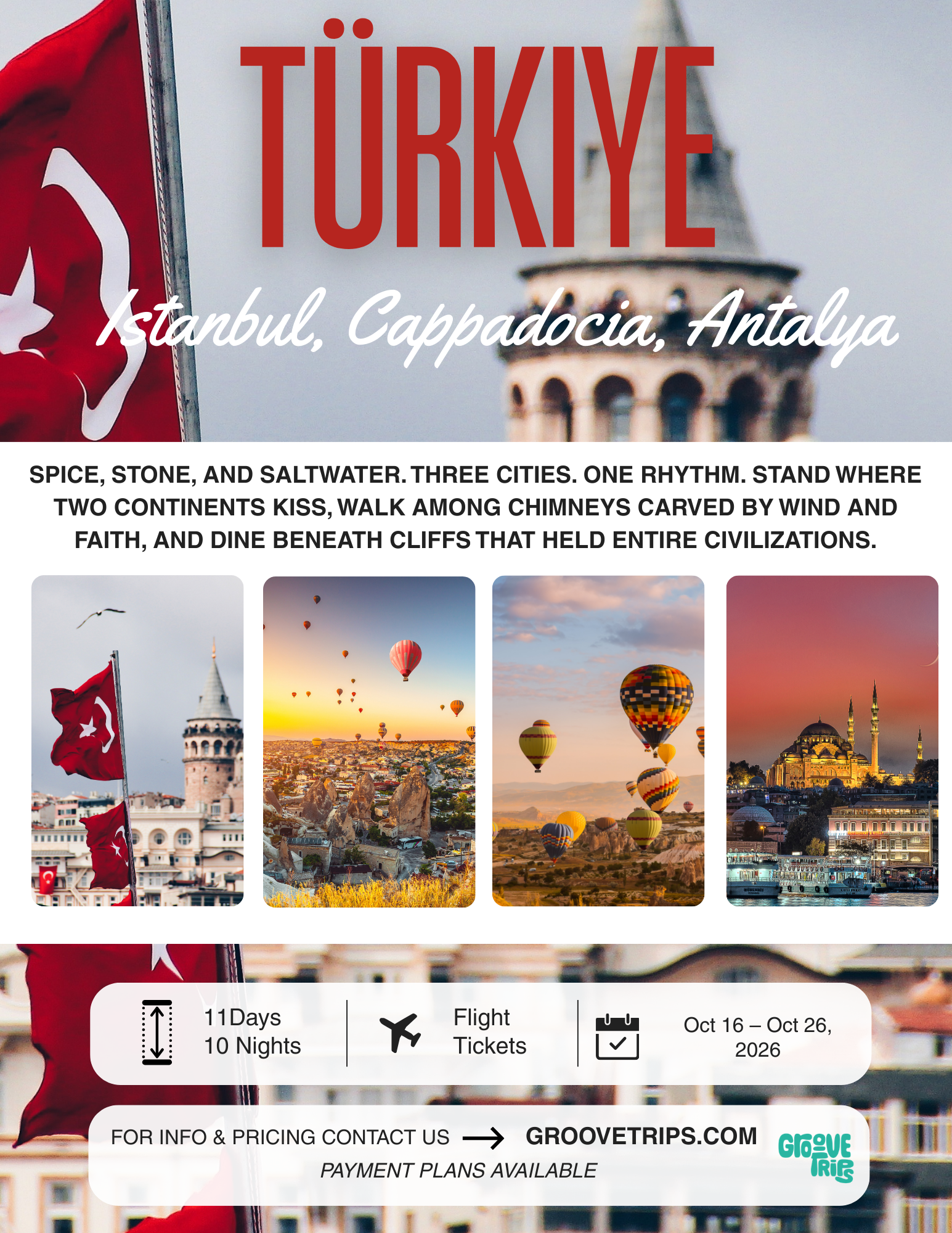 This is more than a tour, it's a journey through time, culture, and breathtaking beauty. Discover the soul of Turkey.